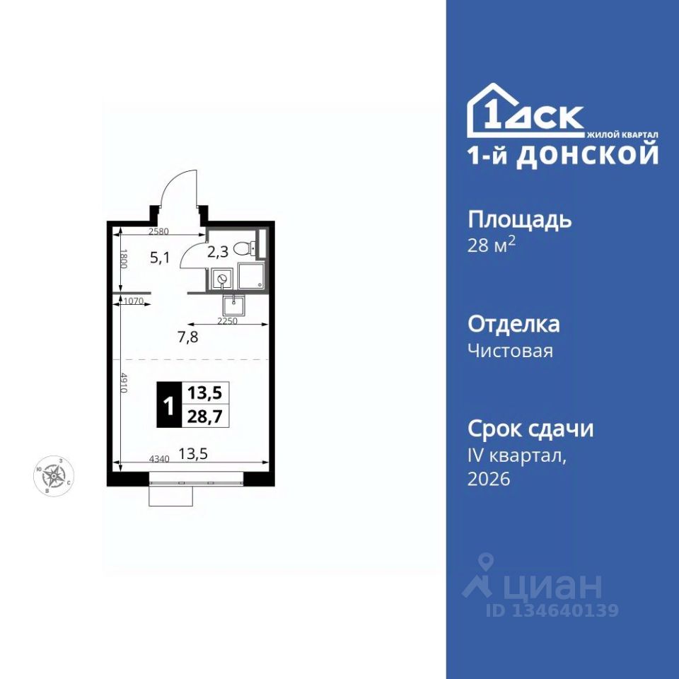 Продаётся квартира-студия номер 729 общей площадью 28.7 кв.м. на 24-м этаже 24 этажного здания. Чистовая отделка.