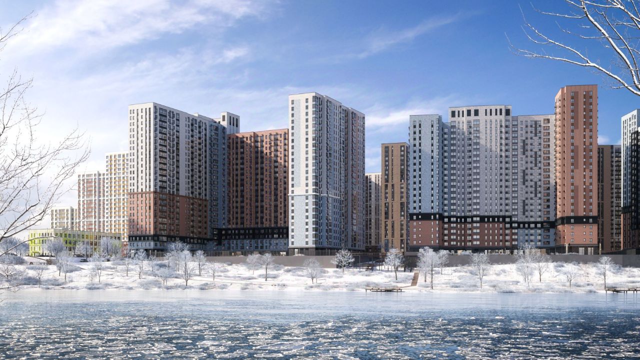 Секции-маяки формируют у зданий визуальную L-форму, что придает застройке структуру и ритмику объемов. На ощущение динамики работает и разная этажность зданий.