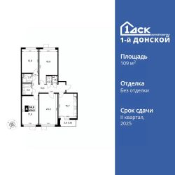 Продаётся 4-к квартира номер 250 общей площадью 109.5 кв.м. на 16-м этаже 24 этажного здания. Отделка Whitebox. Цена с учётом скидки.