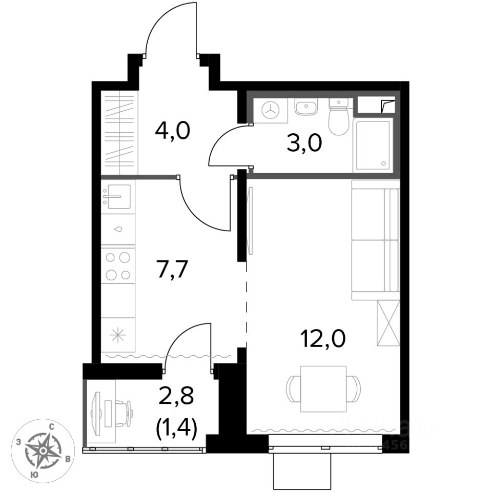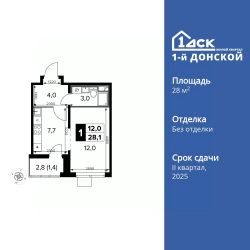 Продаётся 1-к квартира номер 14 общей площадью 28.1 кв.м. на 5-м этаже 9 этажного здания. Отделка Whitebox. Цена с учётом скидки.
