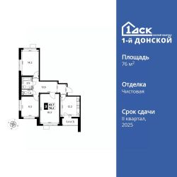 Продаётся 3-к квартира номер 141 общей площадью 76.1 кв.м. на 16-м этаже 21 этажного здания. Чистовая отделка. Цена с учётом скидки.