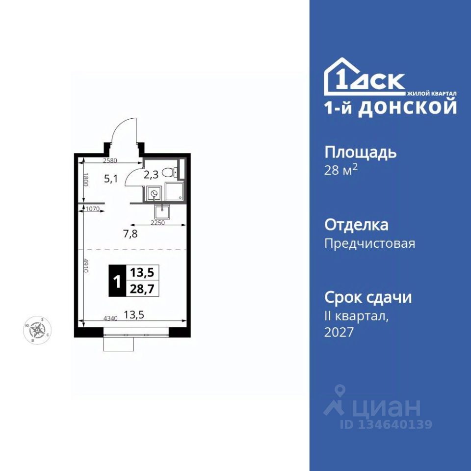 Продаётся квартира-студия номер 663 общей площадью 28.7 кв.м. на 18-м этаже 24 этажного здания. Чистовая отделка.