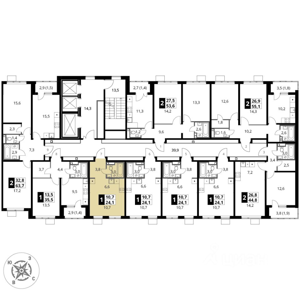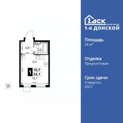 Продаётся квартира-студия номер 562 общей площадью 24.1 кв.м. на 10-м этаже 24 этажного здания. Отделка Whitebox.