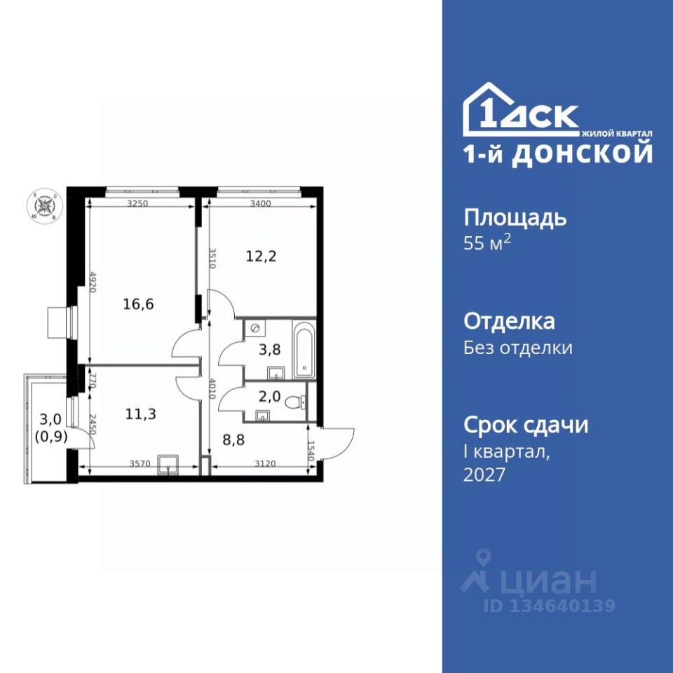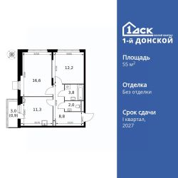 Продаётся 2-к квартира номер 212 общей площадью 55.6 кв.м. на 21-м этаже 24 этажного здания. Без отделки.