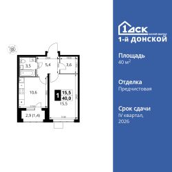Продаётся 1-к квартира номер 417 общей площадью 40 кв.м. на 18-м этаже 24 этажного здания. Отделка Whitebox.