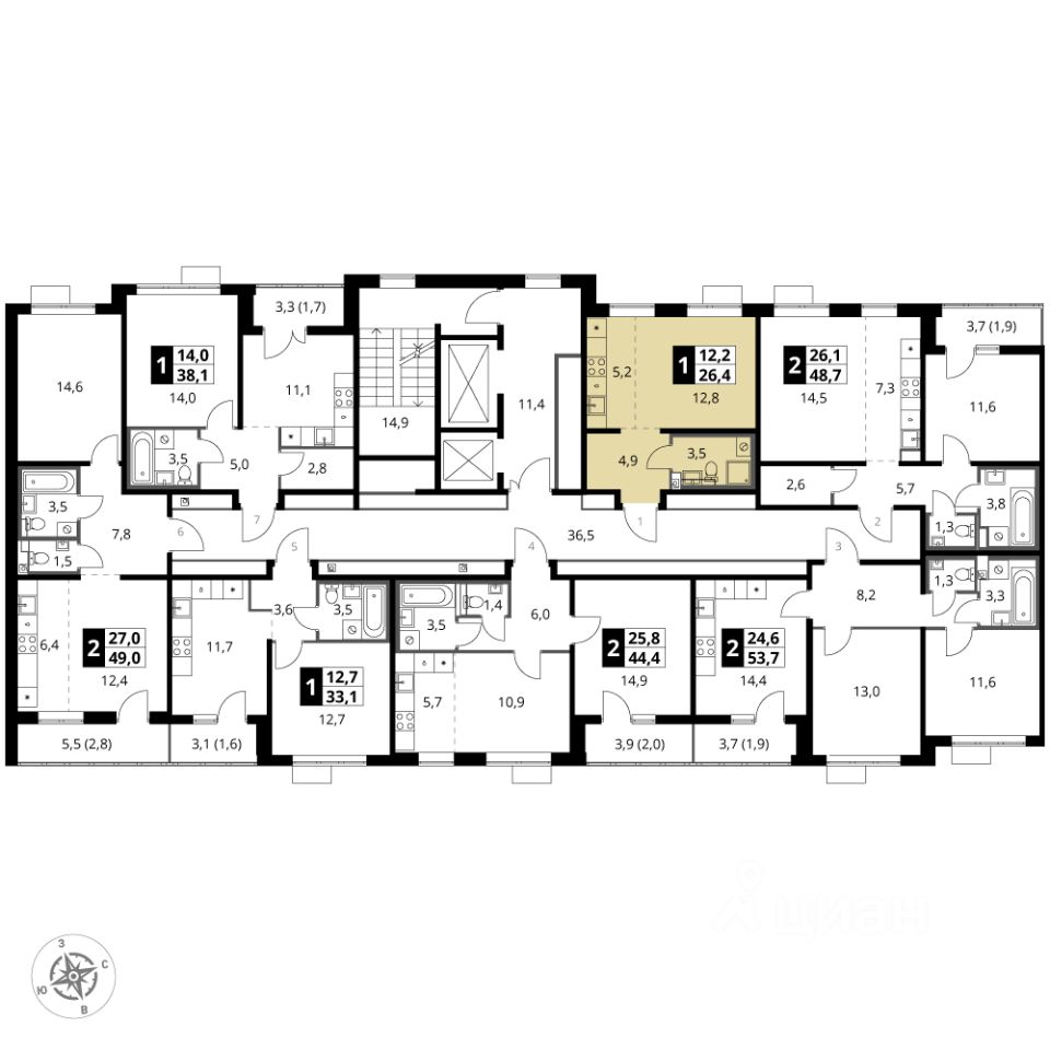 Продаётся квартира-студия номер 347 общей площадью 26.4 кв.м. на 12-м этаже 24 этажного здания. Отделка Whitebox.