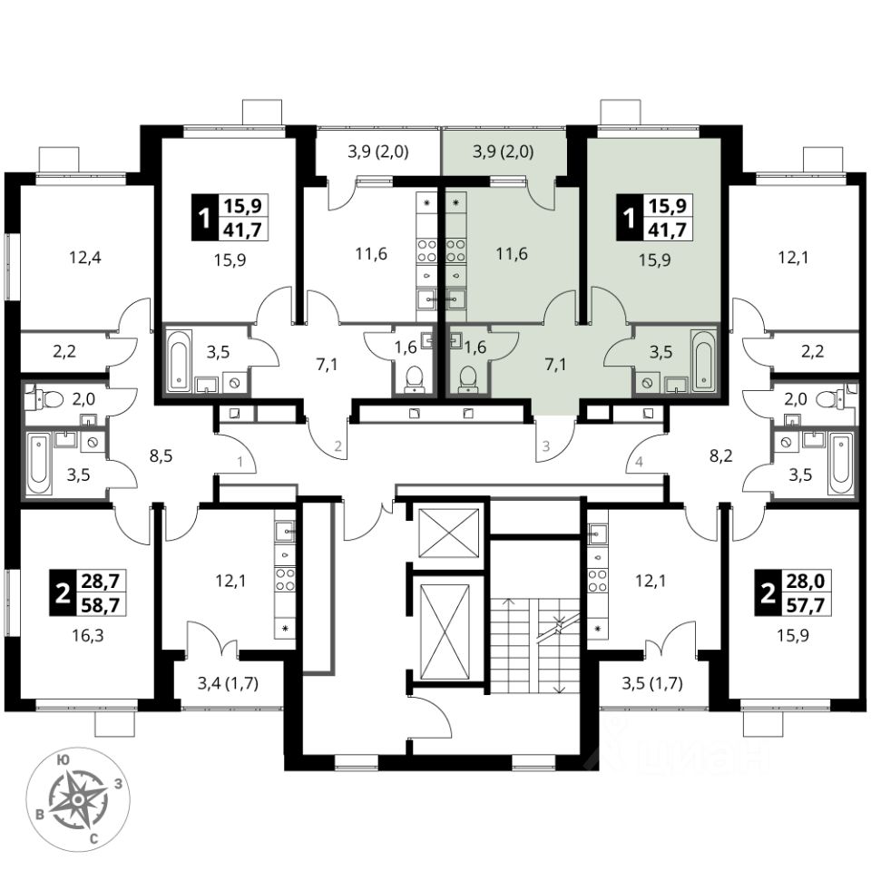 Продаётся 1-к квартира номер 27 общей площадью 41.6 кв.м. на 8-м этаже 24 этажного здания. Отделка Whitebox. Цена с учётом скидки.