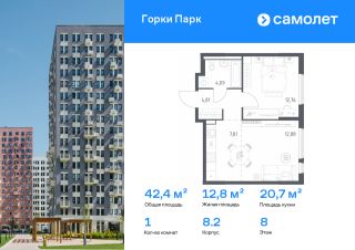 Строим кварталы для жизни с заботой о будущем. Предлагается 1-комнатная квартира комфорт-класса 42,35 кв.м в корпусе 8.2 на 8 этаже, в ЖК "Горки Парк"