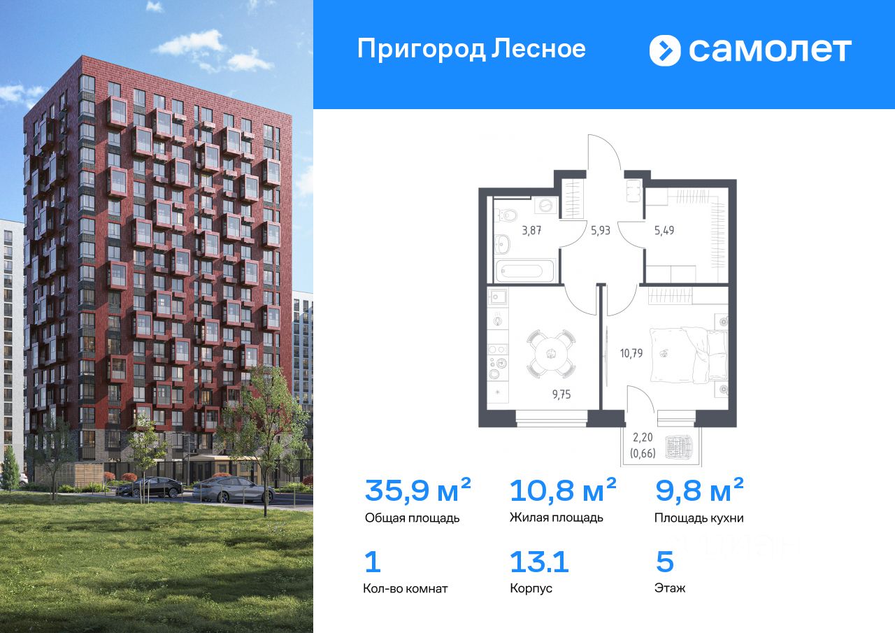 Строим кварталы для жизни с заботой о будущем. Предлагается 1-комнатная квартира комфорт-класса 35,9 кв.м в корпусе 13.1 на 5 этаже, в ЖК "Пригород Лесное"