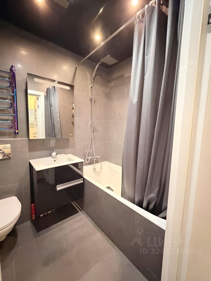 Санузел в кафеле, душевая зона и ванная, тёплый пол