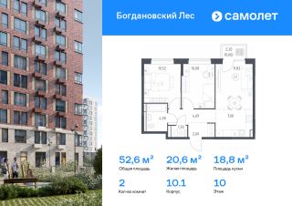 Строим кварталы для жизни с заботой о будущем. Предлагается 2-комнатная квартира комфорт-класса 52,63 кв.м в корпусе 10.1 на 10 этаже, в ЖК "Богдановский Лес"