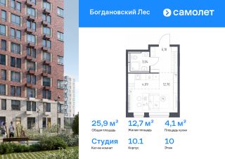 Строим кварталы для жизни с заботой о будущем. Предлагается квартира студия комфорт-класса 25,93 кв.м в корпусе 10.1 на 10 этаже, в ЖК "Богдановский Лес"
