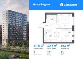 Строим кварталы для жизни с заботой о будущем. Предлагается 1-комнатная квартира комфорт-класса 34,57 кв.м в корпусе 17 на 11 этаже, в ЖК "Новое Видное"