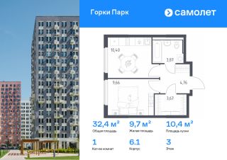 Строим кварталы для жизни с заботой о будущем. Предлагается 1-комнатная квартира комфорт-класса 32,36 кв.м в корпусе 6.1 на 3 этаже, в ЖК "Горки Парк"