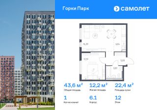 Строим кварталы для жизни с заботой о будущем. Предлагается 1-комнатная квартира комфорт-класса 43,58 кв.м в корпусе 6.1 на 12 этаже, в ЖК "Горки Парк"