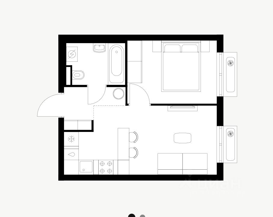 кухня гостиная 16.9 кв.м., комната 10 кв.м.