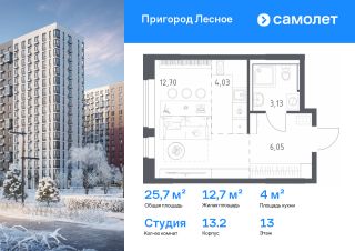 Строим кварталы для жизни с заботой о будущем. Предлагается квартира студия комфорт-класса 25,7 кв.м в корпусе 13.2 на 13 этаже, в ЖК "Пригород Лесное"