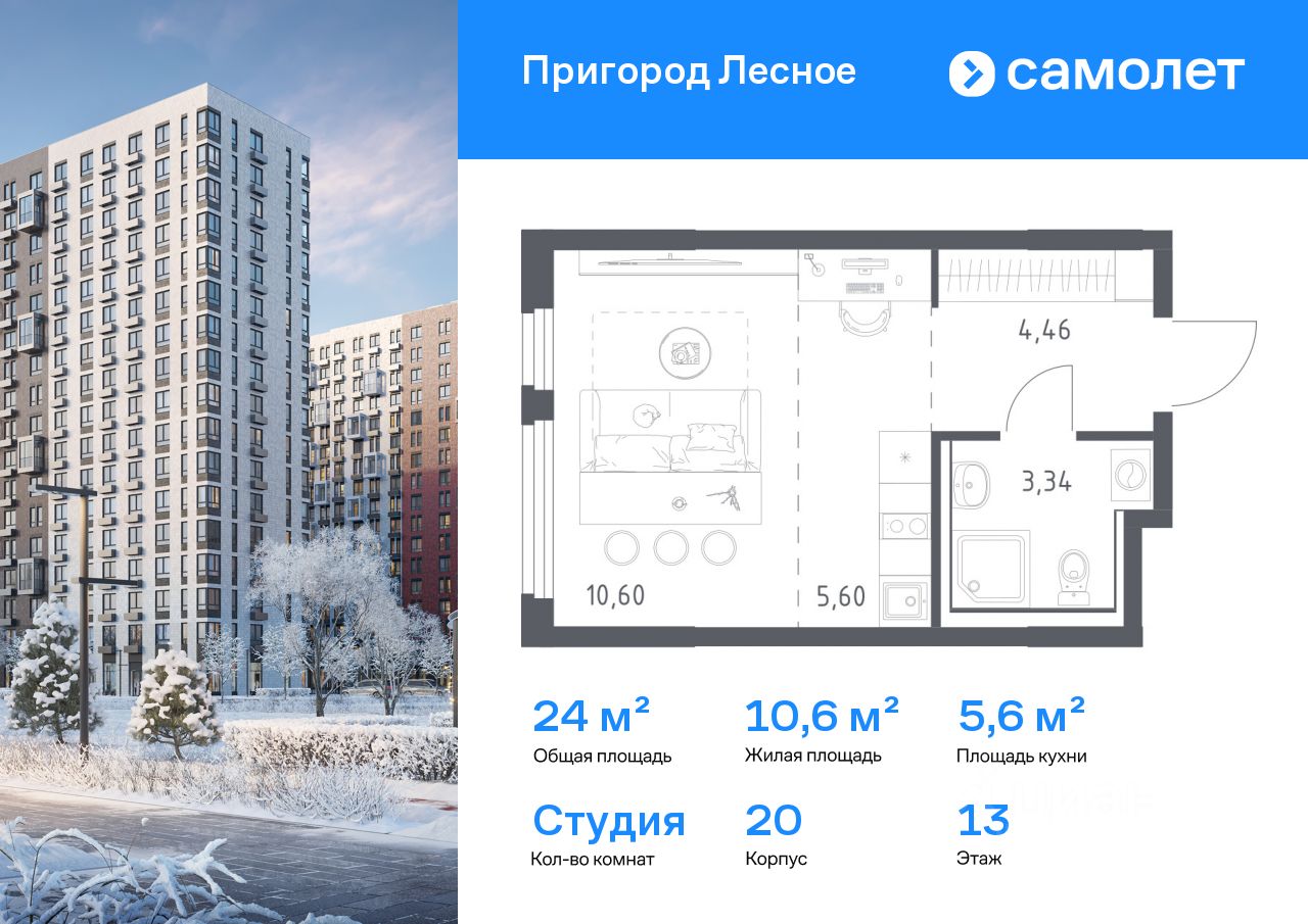 Строим кварталы для жизни с заботой о будущем. Предлагается квартира студия комфорт-класса 24 кв.м в корпусе 20 на 13 этаже, в ЖК "Пригород Лесное"