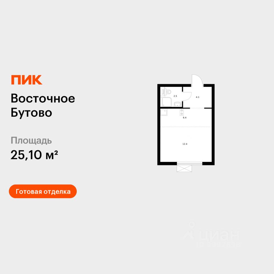 Продаётся квартира-студия площадью 25,1 кв.м на 5 этаже 16 этажного дома (Корпус 42, Секция 2) проекта ПИК Восточное Бутово. Светлый просторный подъезд на уровне земли, функциональная планировка, большие окна, c отделкой.