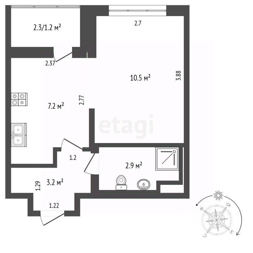 Самая удачная планировка от 1ДСК в сегменте компактных квартир. 23.6 кв.м. (без учета балкона) с полноценной кухней, изолированной комнатой, полноценным с/у и с прихожей, где есть место для обустройства гардеробного пространства.