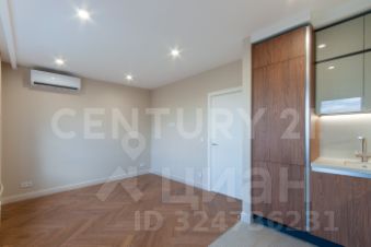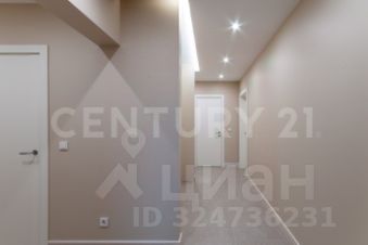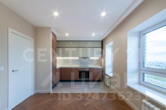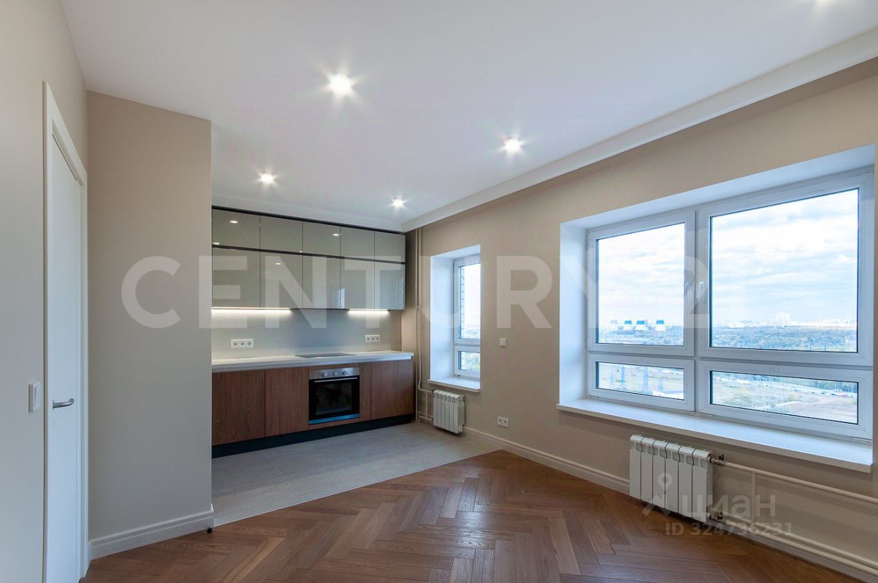 Квартира расположена на 22 этаже 25-этажного корпуса. Функциональная планировка распашонка включает в себя кухню-гостиную 17,5 м2 с зоной отдыха и обеденной группой.