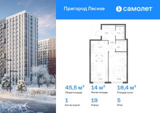 Строим кварталы для жизни с заботой о будущем. Предлагается 1-комнатная квартира комфорт-класса 45,45 кв.м в корпусе 19 на 5 этаже, в ЖК "Пригород Лесное"