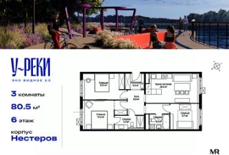 Продаётся 3-комнатная квартира общей площадью 80.50 м² с предчистовой отделкой в ЖК "У реки. Эко Видное 2.0" на 6-м этаже корпуса Нестеров.