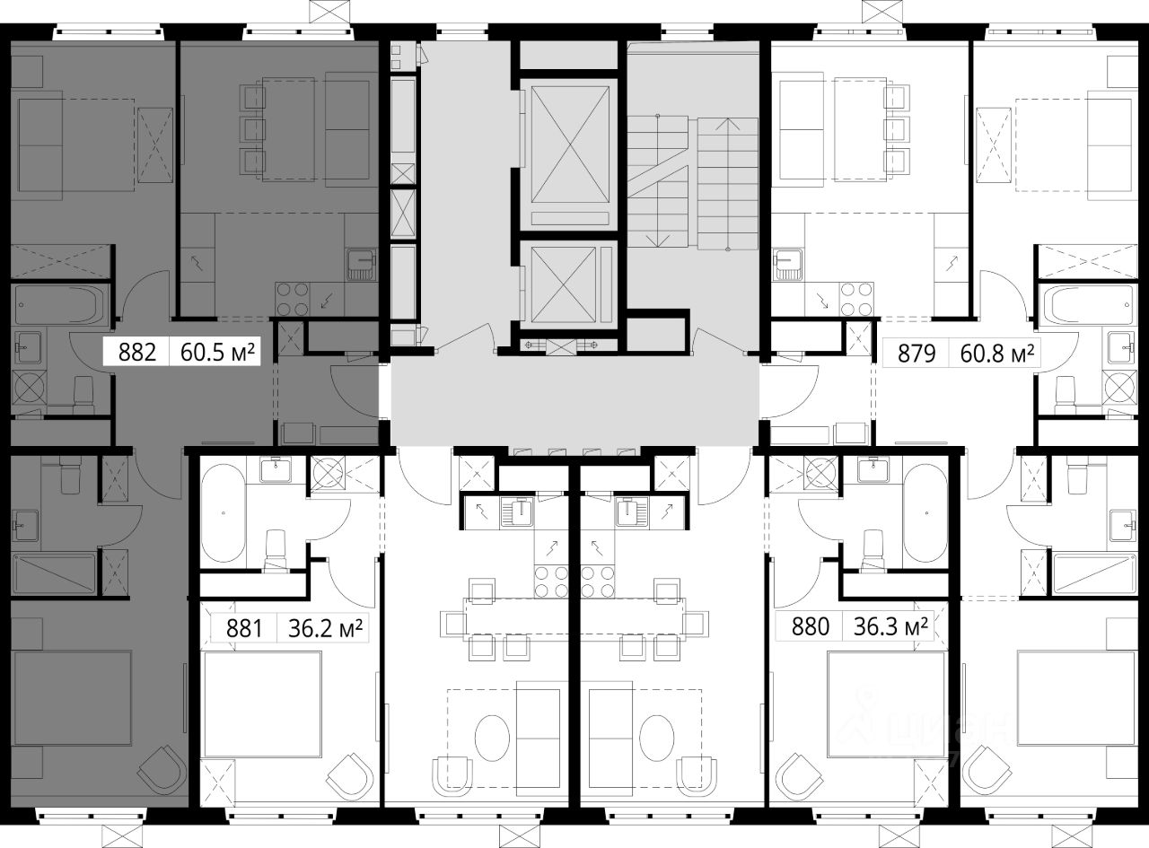 Продаётся 2-комнатная квартира общей площадью 60.50 м² с предчистовой отделкой в ЖК "У реки. Эко Видное 2.0" на 6-м этаже корпуса Нестеров.