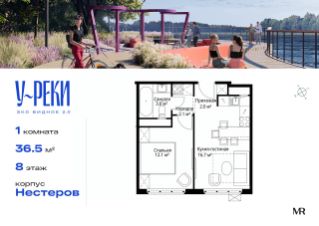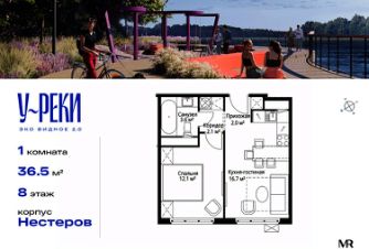 Продаётся 1-комнатная квартира общей площадью 36.50 м² с предчистовой отделкой в ЖК "У реки. Эко Видное 2.0" на 8-м этаже корпуса Нестеров.