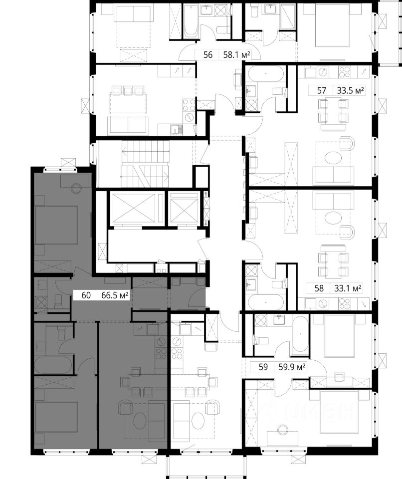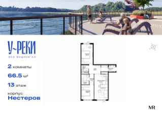 Продаётся 2-комнатная квартира общей площадью 66.50 м² с предчистовой отделкой в ЖК "У реки. Эко Видное 2.0" на 13-м этаже корпуса Нестеров.