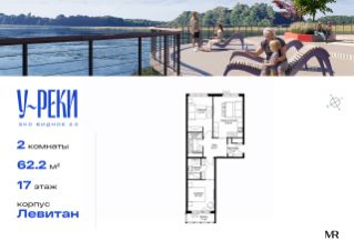 Продаётся 2-комнатная квартира общей площадью 62.20 м² с предчистовой отделкой в ЖК "У реки. Эко Видное 2.0" на 17-м этаже 17 этажного корпуса Левитан.