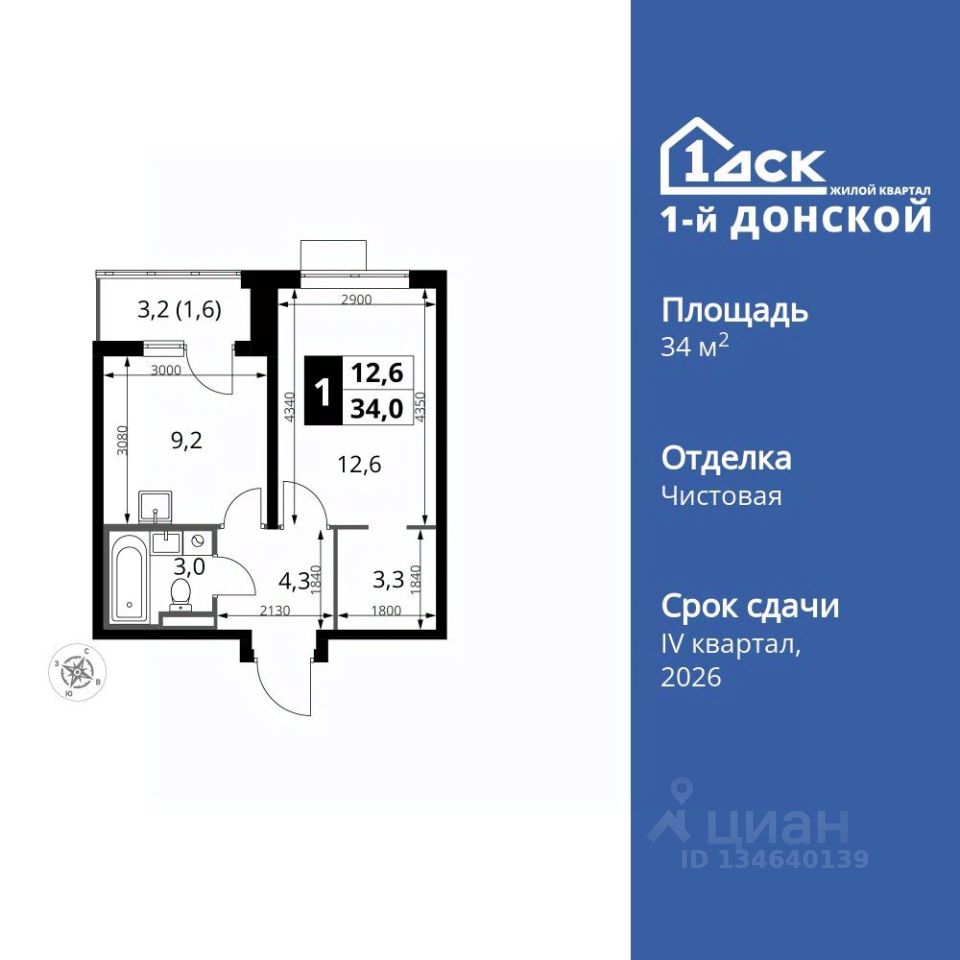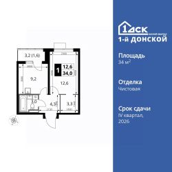 Продаётся 1-к квартира номер 307 общей площадью 34 кв.м. на 7-м этаже 24 этажного здания. Чистовая отделка.