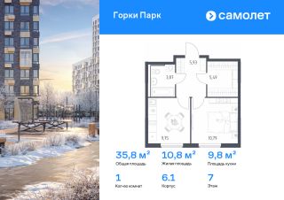 Строим кварталы для жизни с заботой о будущем. Предлагается 1-комнатная квартира комфорт-класса 35,83 кв.м в корпусе 6.1 на 7 этаже, в ЖК "Горки Парк"