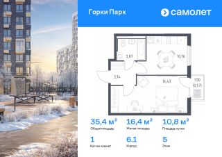Строим кварталы для жизни с заботой о будущем. Предлагается 1-комнатная квартира комфорт-класса 35,37 кв.м в корпусе 6.1 на 5 этаже, в ЖК "Горки Парк"