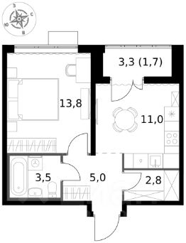 Продаётся 1-к квартира номер 592 общей площадью 37.8 кв.м. на 10-м этаже 24 этажного здания. Отделка Whitebox.