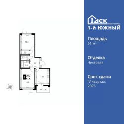 Продаётся 2-к квартира номер 454 общей площадью 61.4 кв.м. на 18-м этаже 24 этажного здания. Чистовая отделка. Цена с учётом скидки.