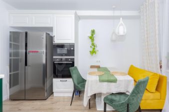 Спокойная отделка в благородных тонах. Дорогая кухонная мебель и встроенная европейская бытовая техника. Двухкамерные оконные стеклопакеты.