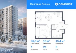 Строим кварталы для жизни с заботой о будущем. Предлагается 1-комнатная квартира комфорт-класса 32,91 кв.м в корпусе 21 на 6 этаже, в ЖК "Пригород Лесное"