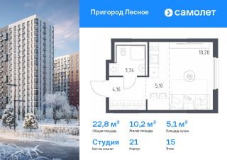 Строим кварталы для жизни с заботой о будущем. Предлагается квартира студия комфорт-класса 22,8 кв.м в корпусе 21 на 15 этаже, в ЖК "Пригород Лесное"