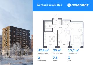 Строим кварталы для жизни с заботой о будущем. Предлагается 2-комнатная квартира комфорт-класса 47,81 кв.м в корпусе 7.3 на 3 этаже, в ЖК "Богдановский Лес"