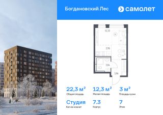 Строим кварталы для жизни с заботой о будущем. Предлагается квартира студия комфорт-класса 22,29 кв.м в корпусе 7.3 на 7 этаже, в ЖК "Богдановский Лес"