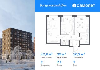Строим кварталы для жизни с заботой о будущем. Предлагается 2-комнатная квартира комфорт-класса 47,81 кв.м в корпусе 7.1 на 7 этаже, в ЖК "Богдановский Лес"