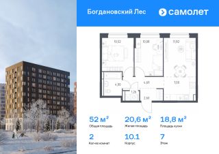 Строим кварталы для жизни с заботой о будущем. Предлагается 2-комнатная квартира комфорт-класса 51,97 кв.м в корпусе 10.1 на 7 этаже, в ЖК "Богдановский Лес"