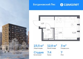 Строим кварталы для жизни с заботой о будущем. Предлагается квартира студия комфорт-класса 23,48 кв.м в корпусе 7.4 на 7 этаже, в ЖК "Богдановский Лес"