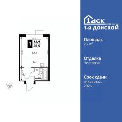 Продаётся квартира-студия номер 115 общей площадью 26.5 кв.м. на 12-м этаже 24 этажного здания. Чистовая отделка.