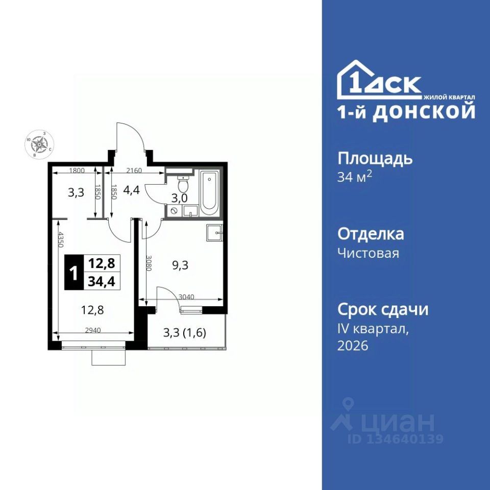Продаётся 1-к квартира номер 722 общей площадью 34.4 кв.м. на 23-м этаже 24 этажного здания. Чистовая отделка.