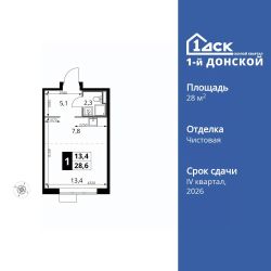 Продаётся квартира-студия номер 597 общей площадью 28.6 кв.м. на 12-м этаже 24 этажного здания. Чистовая отделка.