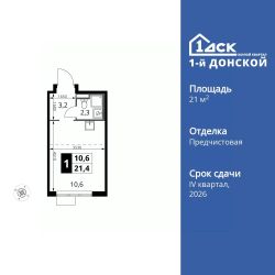 Продаётся квартира-студия номер 621 общей площадью 21.4 кв.м. на 14-м этаже 24 этажного здания. Отделка Whitebox.