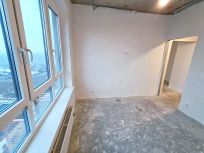 В квартире выполнен ремонт Whitе Вох идеально ровные стены и потолки (под покраску или обои), качественная стяжка пола, вся электрика разведена, смонтированы счётчики воды и электричества. В санузле ремонт "под ключ", установлена сантехника.