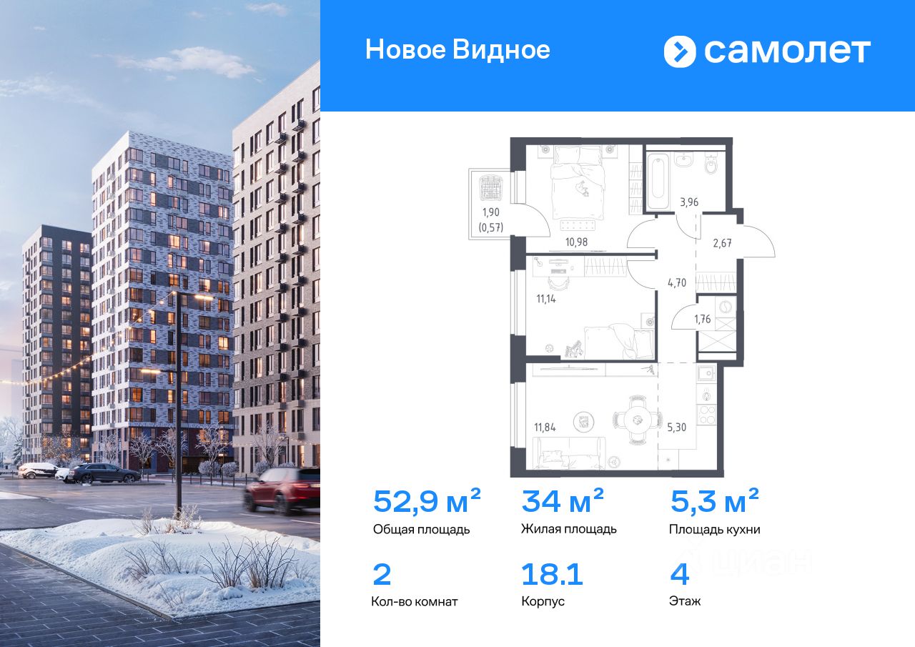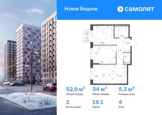 Строим кварталы для жизни с заботой о будущем. Предлагается 2-комнатная квартира комфорт-класса 52,92 кв.м в корпусе 18.1 на 4 этаже, в ЖК "Новое Видное"